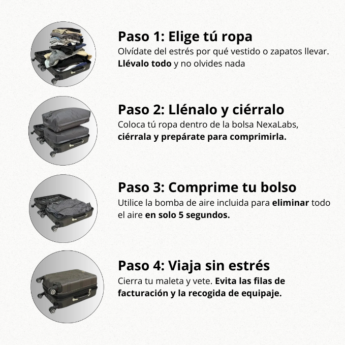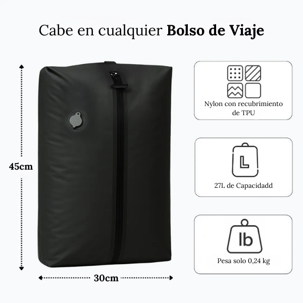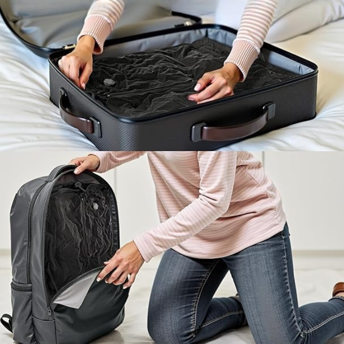 Súper fácil de usar y cumple con todas las expectativas: comprime la ropa rápidamente y la mantiene bien sellada. El material se siente resistente, no tan endeble como otros que he probado. Facilita mucho el empaque y ayuda a mantener todo organizado. Sinceramente, es un producto excelente que facilita los viajes.